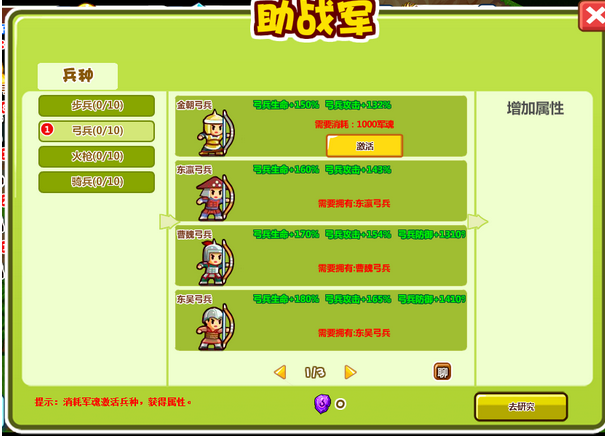 凡是已经获得过的兵种,都可通过消耗军魂激活成为助战军,直接给兵种的生命、攻击、防御进行百分比加成,是不是很逆天啊!